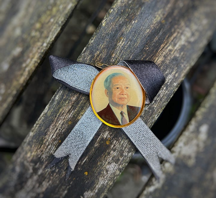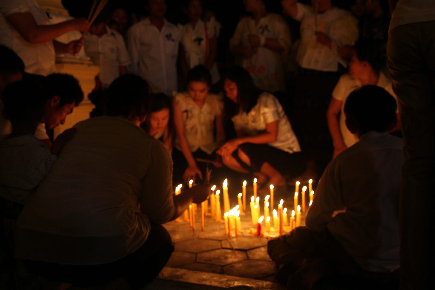 In the evening, fireworks are set off—and also some bombs disguised as fireworks. That is also a way of celebrating someone’s life. We suspect it is a generous donation from China, the country where the king has lived for a long time. Music echoes through all the streets; in front of the palace, we see hundreds of people sitting together, burning candles and incense, and still wearing the King Sihanouk badge with pride.