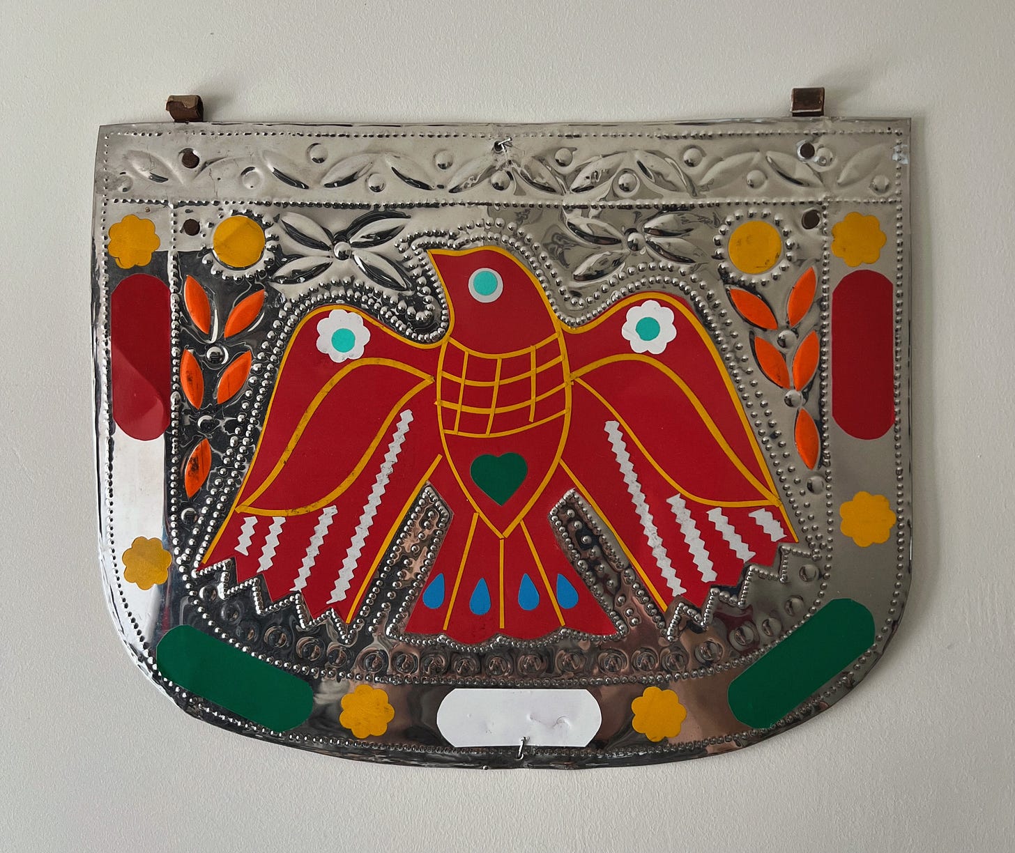 In the hostel, there are plates hanging like the ones I saw on the richly decorated Pakistani trucks on the Karakoram Highway. I tell the hostel owner that I really like those trucks and ask him where we can buy something similar. He immediately grabs a chair and some tools to unscrew one of the plates from the wall.
