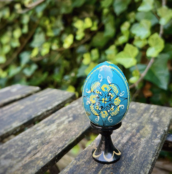 Since the war started in 2022, I’ve been a volunteer in Amsterdam, helping in a refugee shelter. I just do the dishes while the Ukrainian chef cooks traditional dishes (occasionally, I’m allowed to cut some cucumber 🙏). We talk about food, recipes, the fresh produce she had in Ukraine, and living in the Netherlands. She always lets me taste things or even makes me cakes or dumplings. Because her birthday is around Easter, I gave her a nicely decorated Easter egg this year.